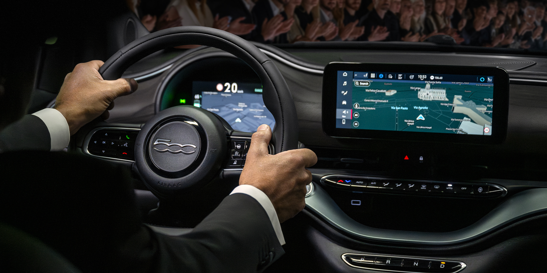 The 500e Giorgio Armani Collector’s Edition will accompany you on all of your adventures with a bespoke style, thanks to a dedicated splash screen and signature Giorgio Armani tunes on the radio* as well as a premium JBL Audio System.