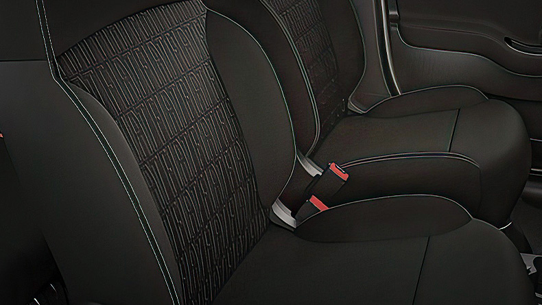 On your Fiat Panda interior you'll discover how sustainability meets comfort in the new black fabric seats combined with the Fiat monogram and recycled seaqual yarn.