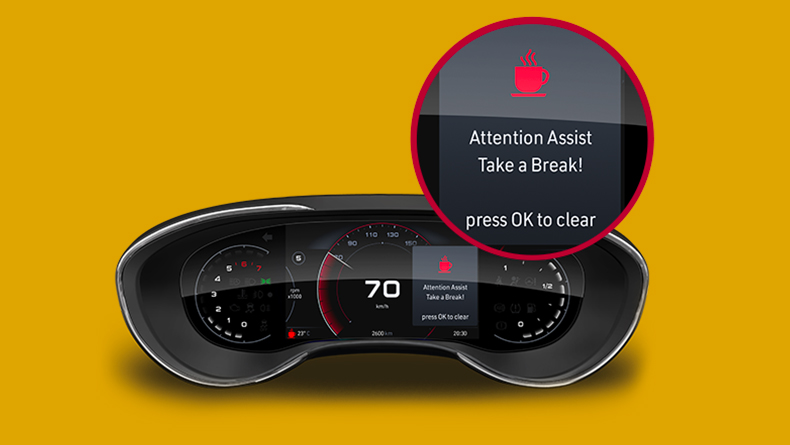 The system can detect the initial signs of fatigue by monitoring lateral movements of the vehicle, advising to take a break. A visual and acoustic warning will be recorded on the instrument cluster.