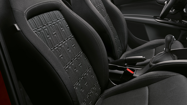 The latest evolution of the Fiat city car signature stands out on the new black recycled-fabric seats with Fiat monogram. Everything for an exclusive interior look.